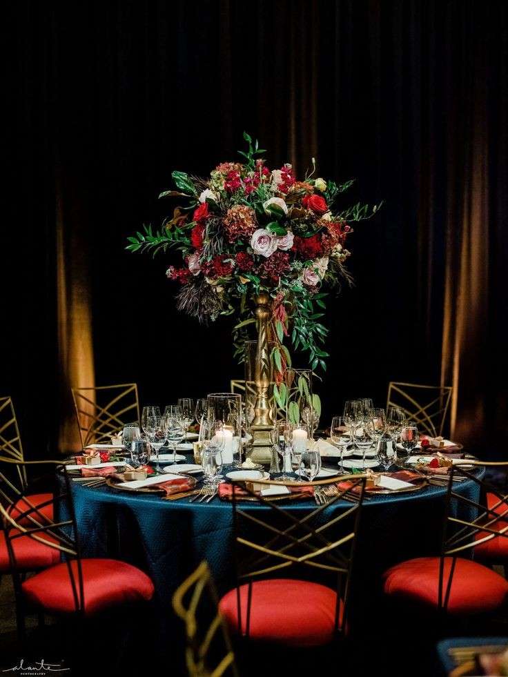 There were numerous dining tables; the long ones, in particular, had wine red tablecloths draped over them, but the cloth on a circular table in the centre was a deep ocean blue. Upon it was a large glass vase of flowers: roses, delphiniums, plumerias, salvia azurea, poppies, and love-in-a-mists. *
