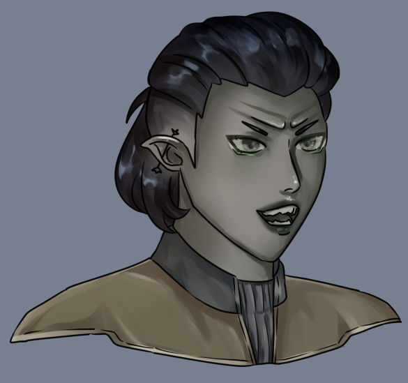 • Backstory: Born in Japan, Tamura T'lai was abandoned into the care of their grandparents at the age of three – though given a rather cryptic message, hidden in a pendant that was given to them to safeguard. Their childhood was hard, as their Vulcan heritage marked them as a target. But in turn, that hardened them, making them a force to be reckoned with, making them cold and ruthless. They grew up believing their Grandparent’s loyalist views, and they fit in well with the fabric of Terran Empire life – despite their hybrid status. Though secretly, they had started to form their own views on life – mainly an act of rebellion where they started to read the teachings of Surak, spawned by a belief that the emotional nature of many Terrans was hindering their upward trajectory.