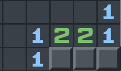 "Yeah, hit me, what've we got-" he looked over Dezyim's shoulder at the lock and turned his head to the side as he tried to recognize what the pattern was... "Oh, I forget what this shit's called, but it's like.. each number tells you how many bombs it's touching. So you wanna click the first two, I think, because the 1 on the left can only be touching that one on the very left, and then that first 2 also can only be touching 2, and needs two... so, yeah, those. Not sure what the 1 at the top's doing, but... yeah, my bet's the first two."