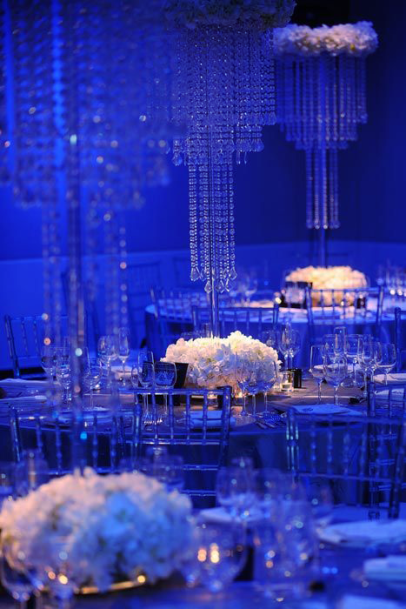 To the right-hand side of the ballroom side sat one part of the dining area, the two situated to either side. Bouquets of white flowers decorated circular tabletops and from above hanged décor designed to look like falling crystalline structures made out of ice. Candles emanated a soft golden glow which made a pleasant contrast to the dark blue lighting of the hall. Waiters made up of voluntary civilian and Starfleet staff made their way between tables taking orders from the set menu.