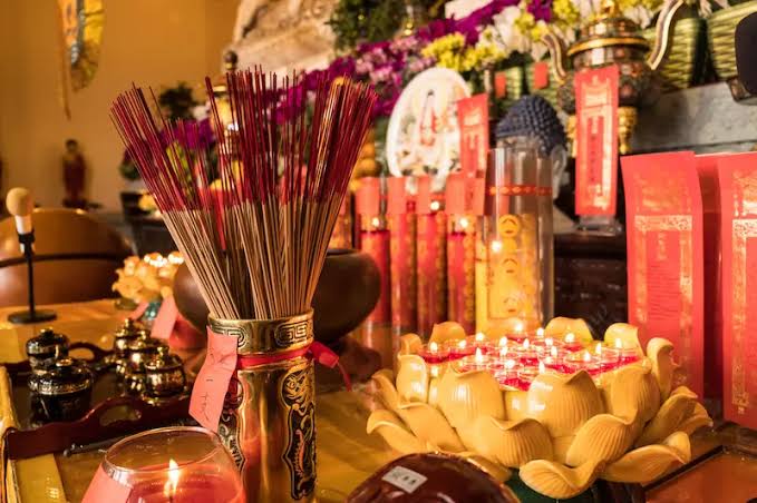 As they approached, one of Xal's manicured hands slid into the pocket of their nicest powder pink suit and grasped something that had made a bit of a bulge in their short jacket. Their fist rounded out the pocket from inside, and they pulled, revealing a handful of Romulan Tree candy. They were multicolored and glistened in the warm, low lighting from all of the candles, shiny and hard like many other candies from around the galaxy. Xal set them down in an empty spot at the altar, grabbed and incense stick, and lit it with whatever fire-making materials were available. The smoke plumed upward, and Xal waited.
